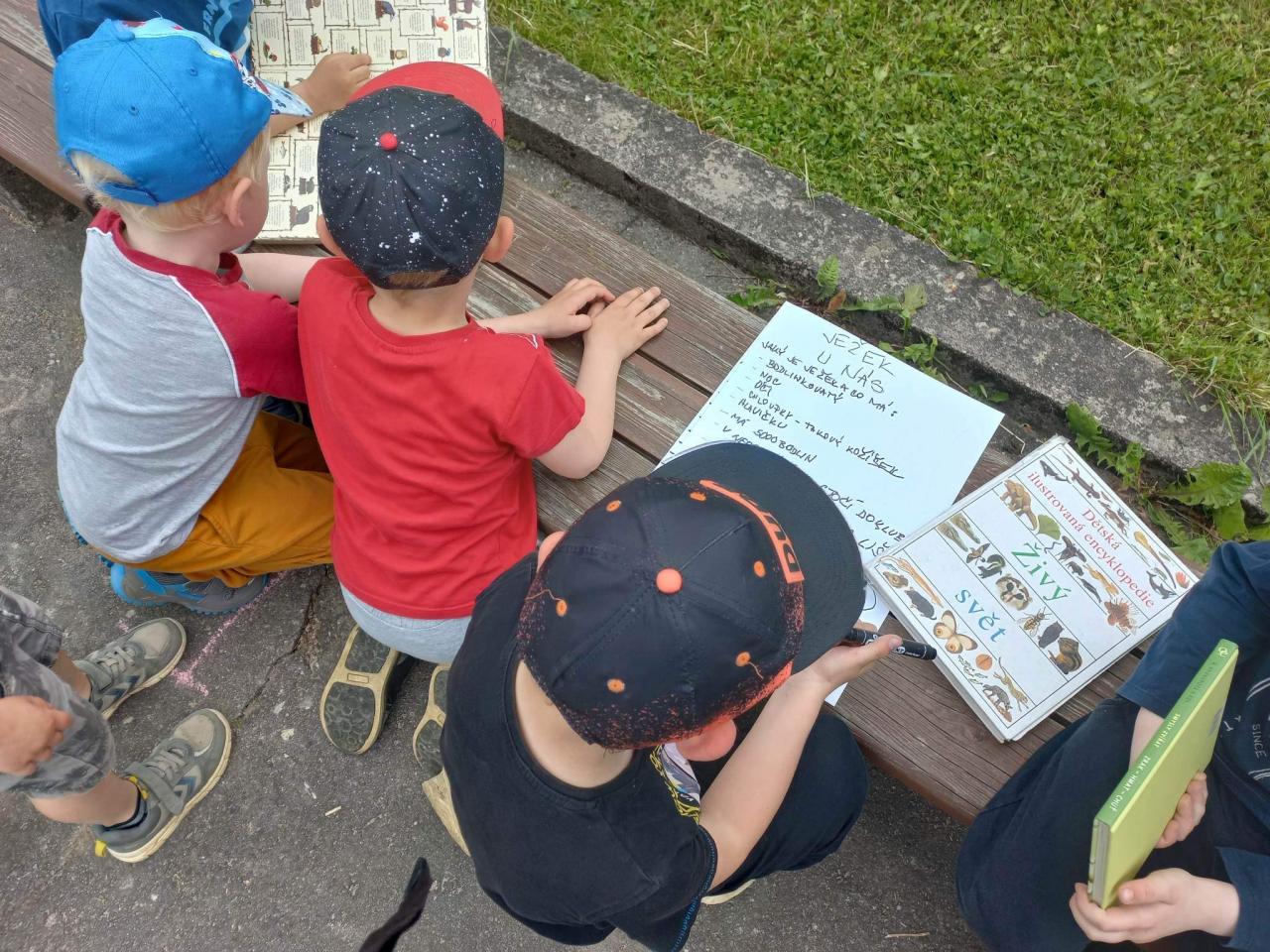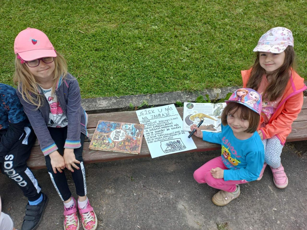 Pozorovali jsme ježečka, kterého se svým tatínkem našel kamarád ze školky. Ježeček byl přenesen do bezpečí na zahrádku.