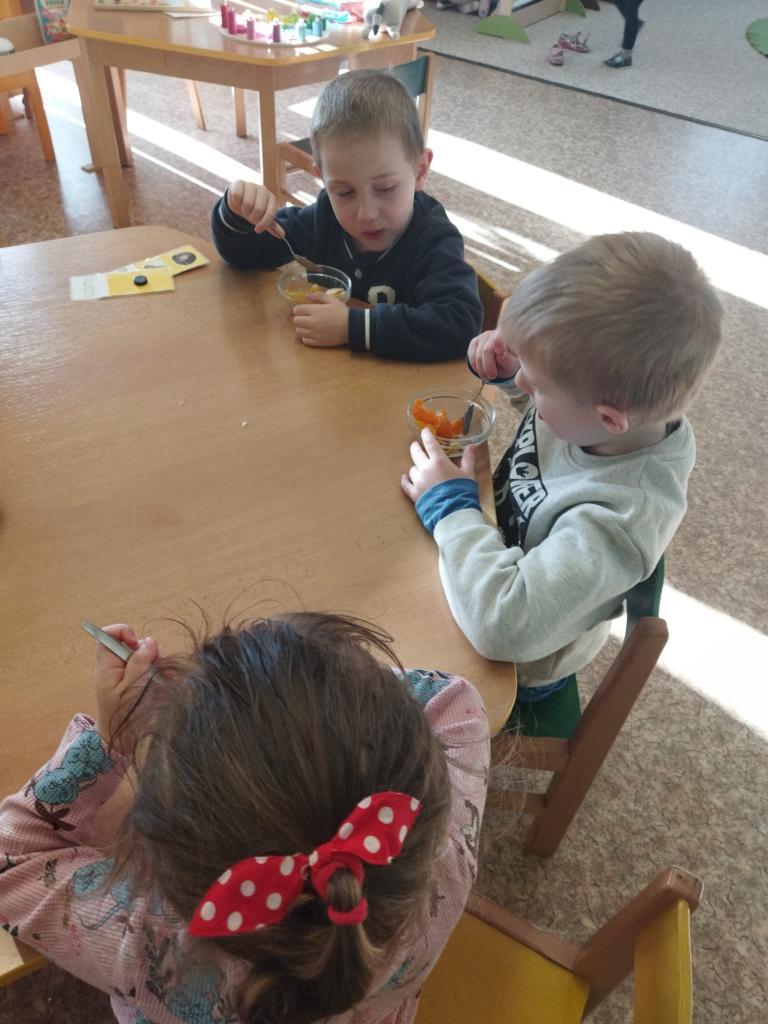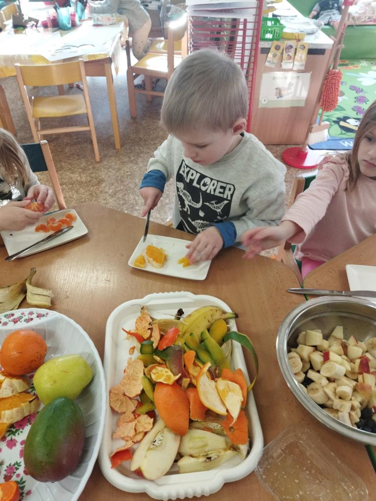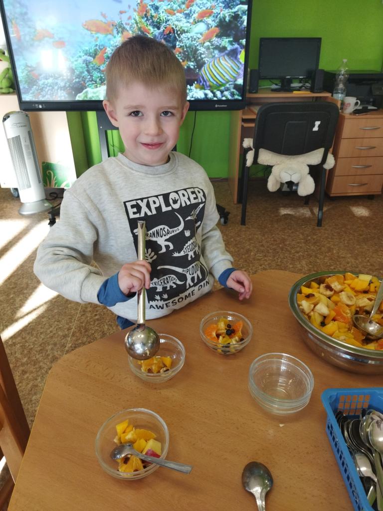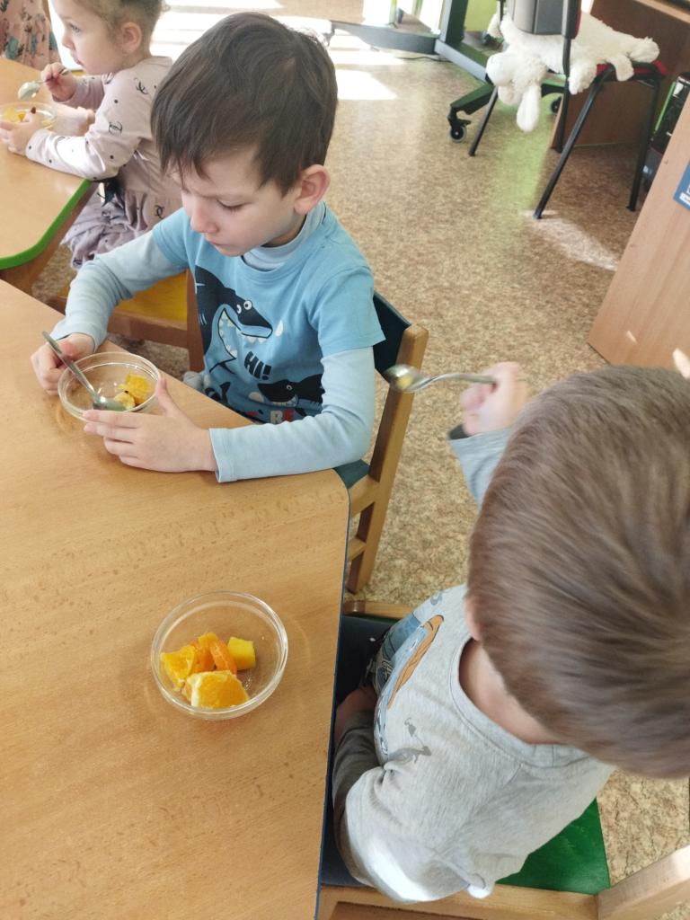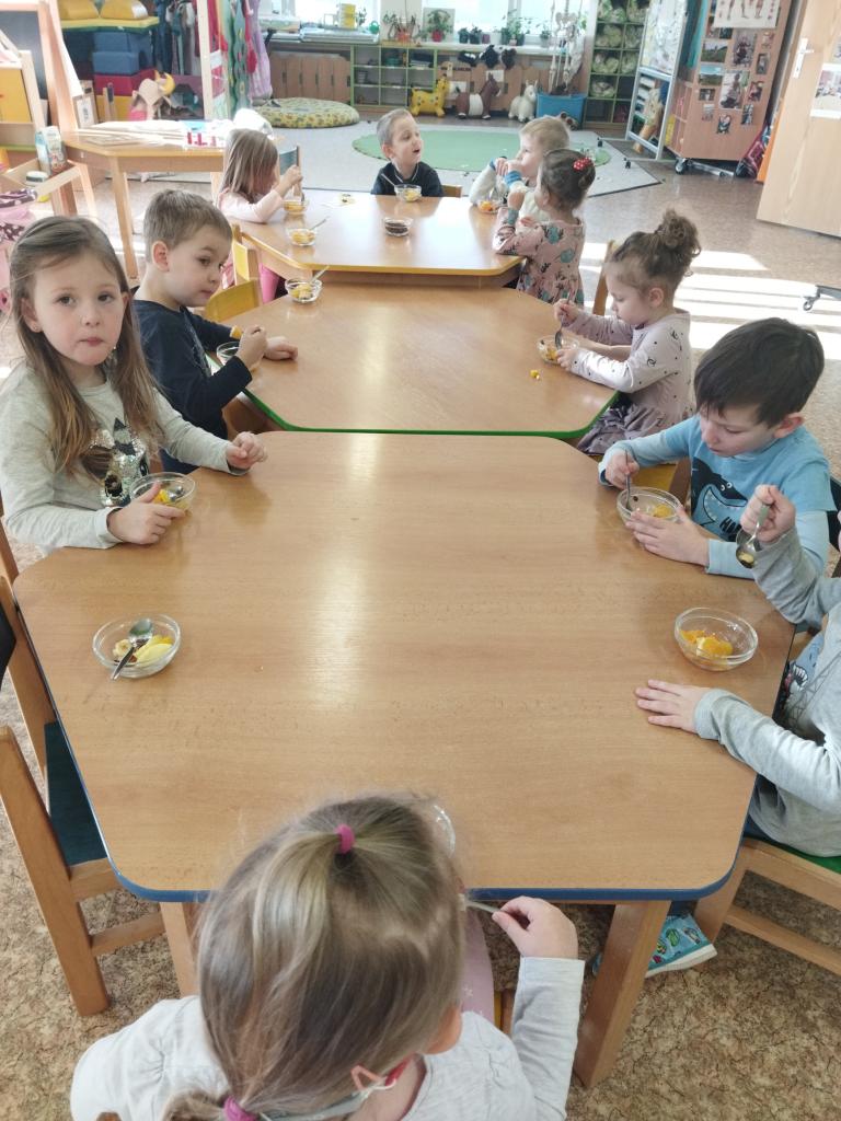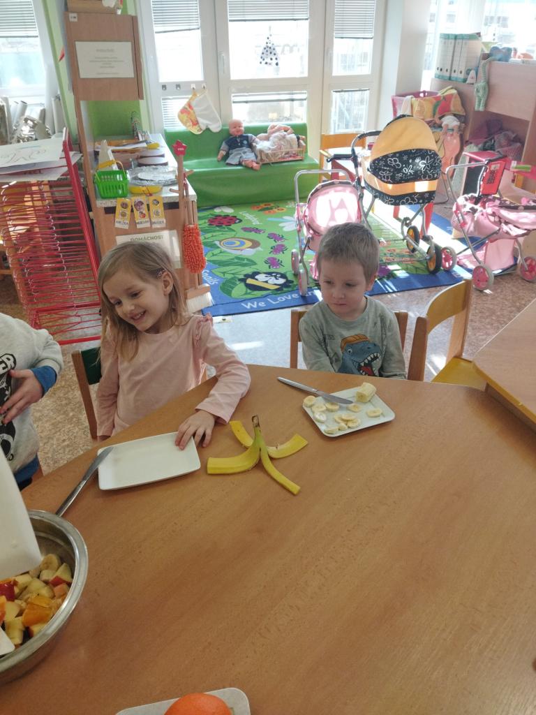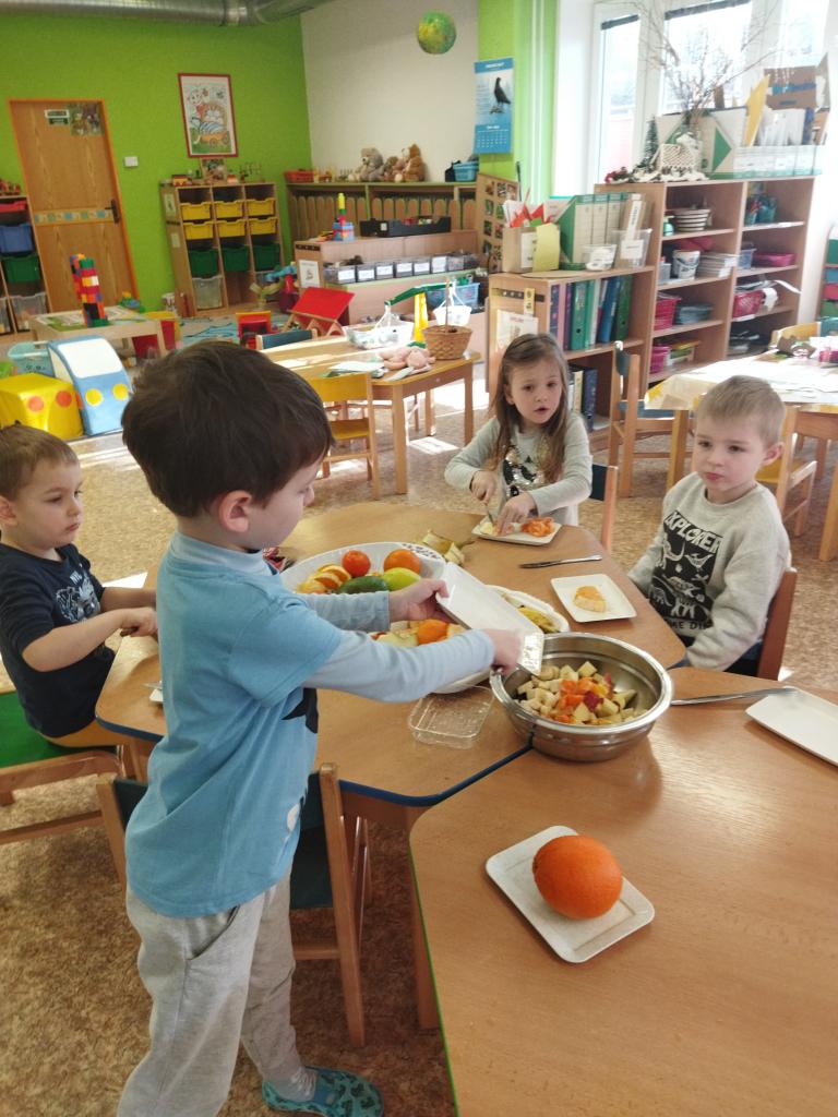 Vitamíny a ovoce potřebuje naše tělíčko v boji proti bacilům. Děti donesly různé druhy ovoce - banány, jablíčka, pomeranče, mandarinky, mango, borůvky , rozinky. Byla to veliká dobrota.