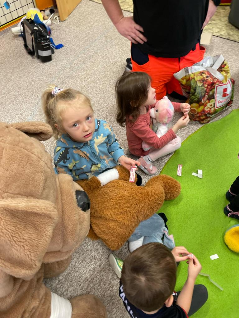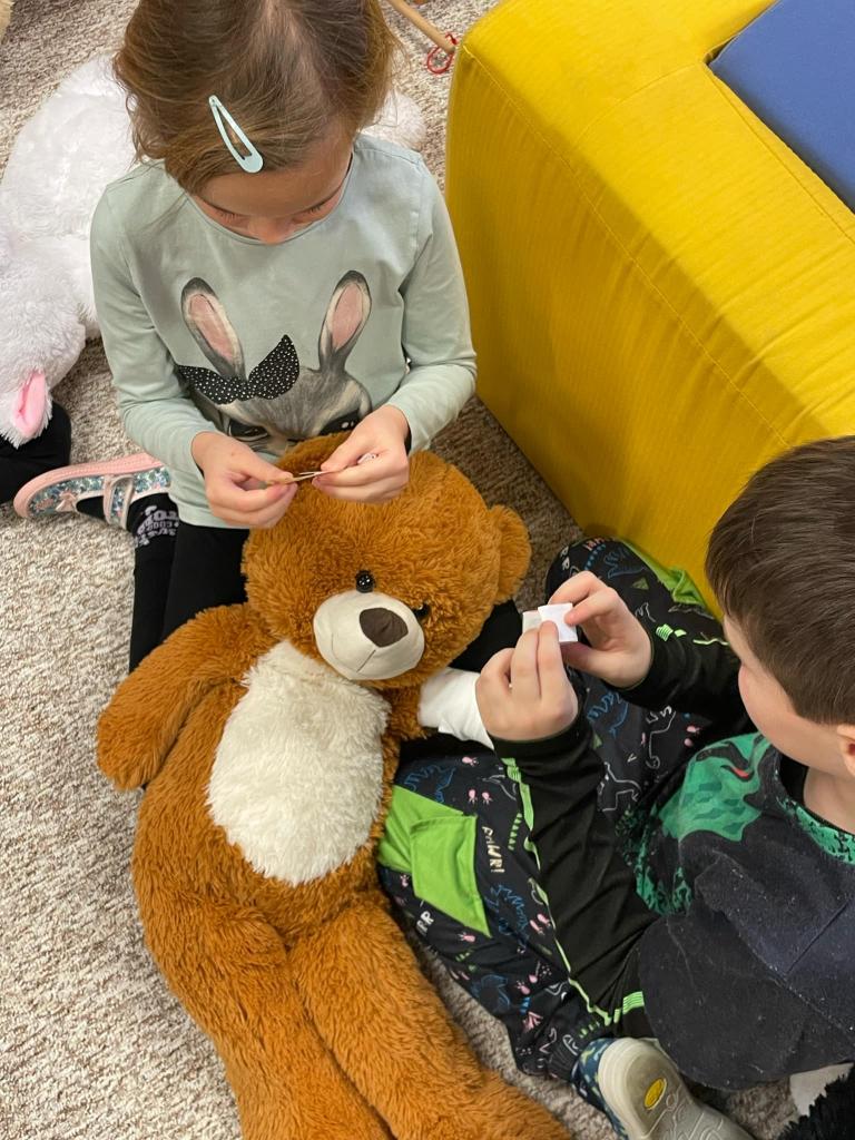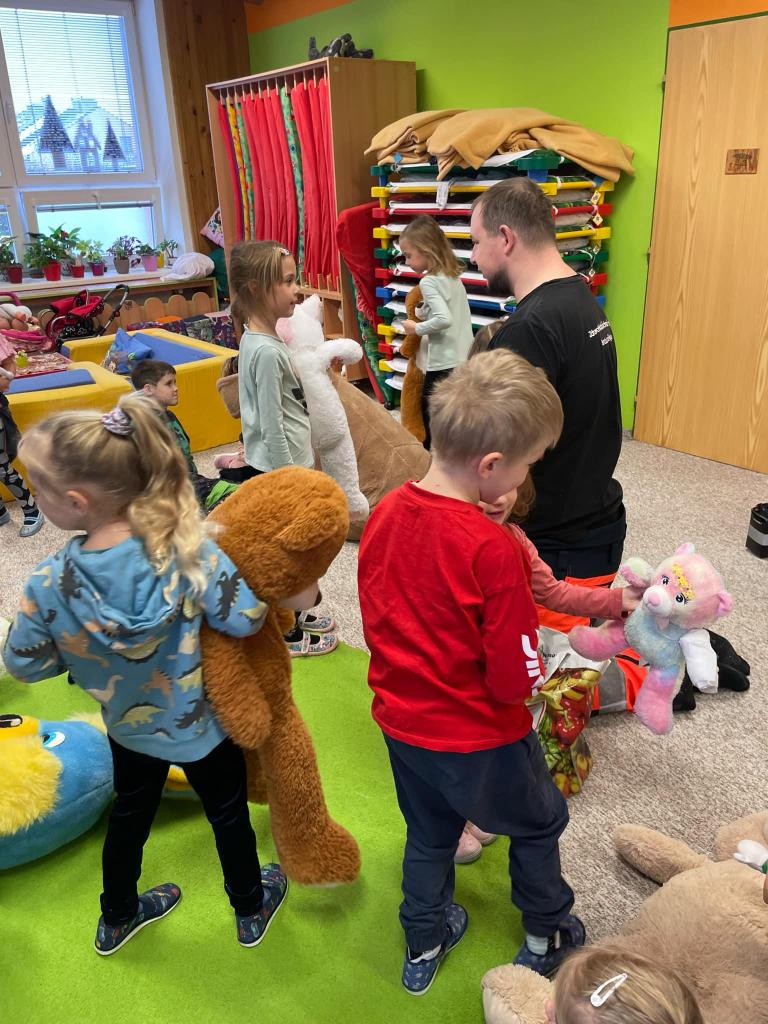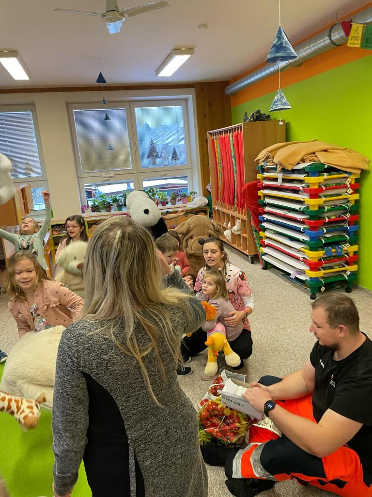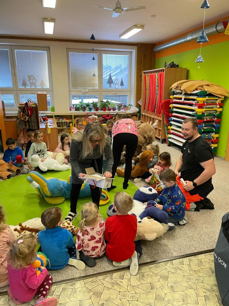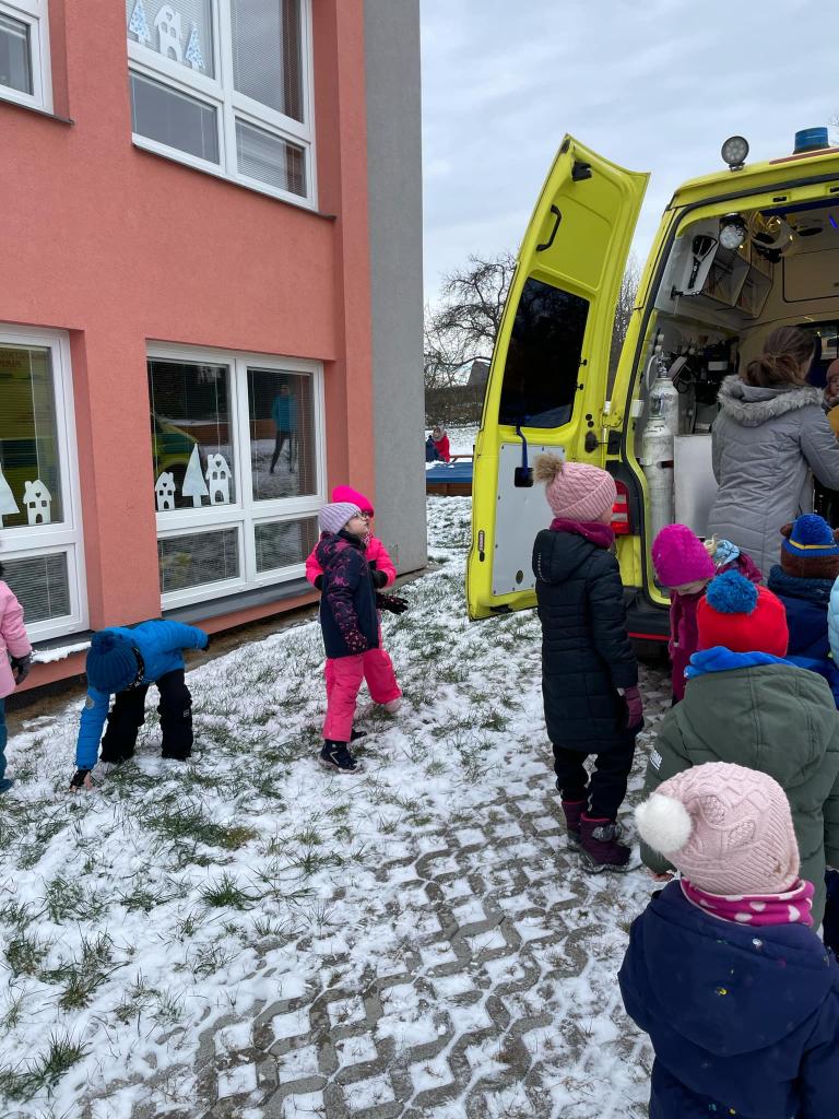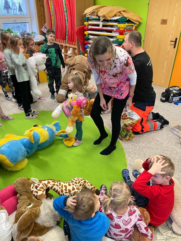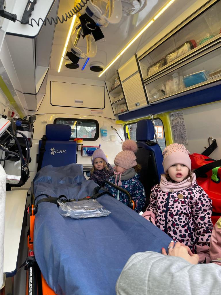 Záchranáři seznámili děti se svou prací, ukázali jim své zařízení a pomůcky. Děti si vše mohly vyzkoušet a dokonce si na závěr prohlédly také záchranářský vůz. Děkujeme záchranářům z Pardubické nemocnice.