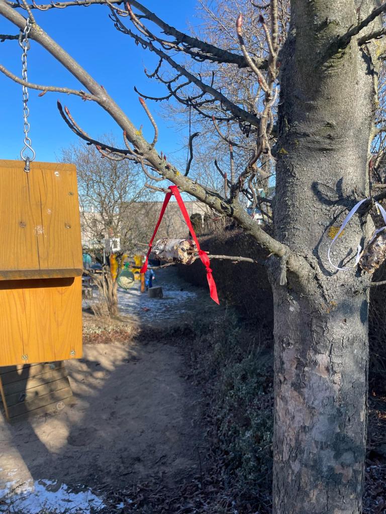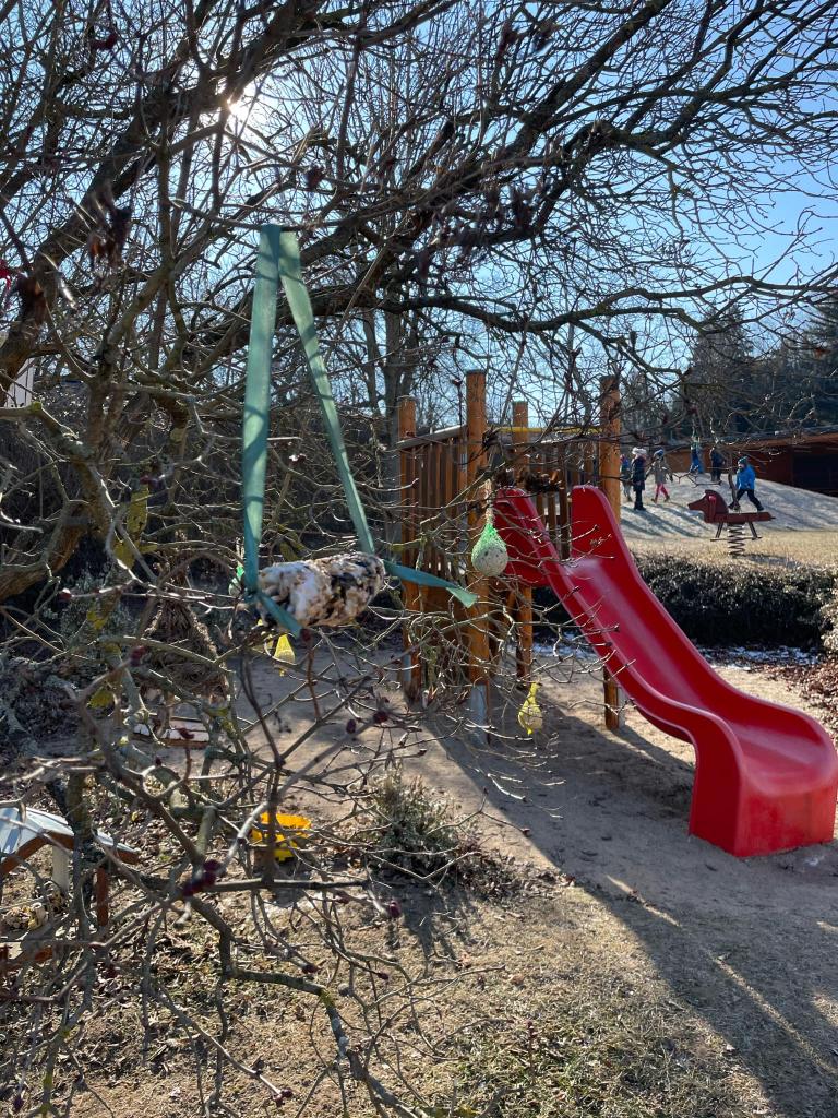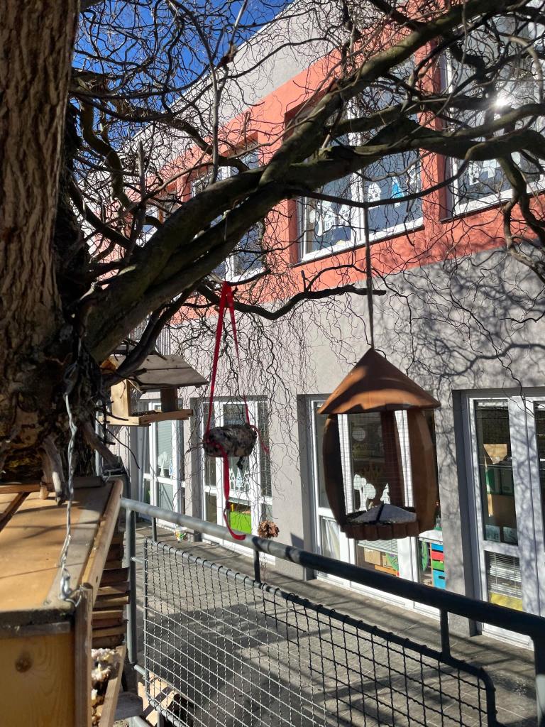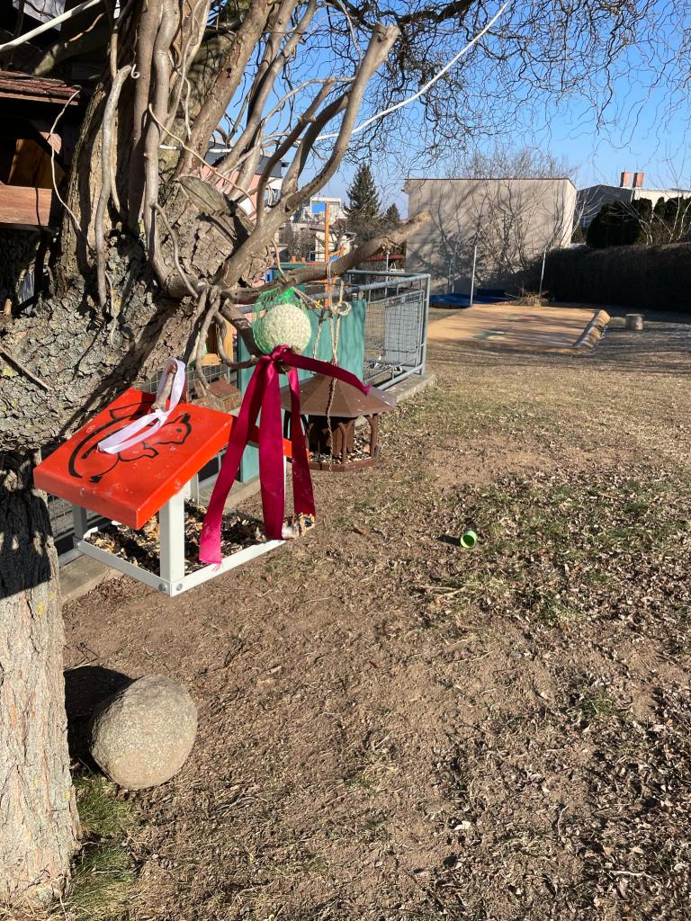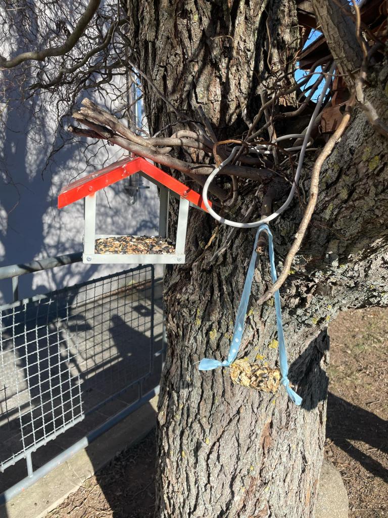Veverky vyráběli baštu pro ptáčky, poté je rozvěsily na stromy.