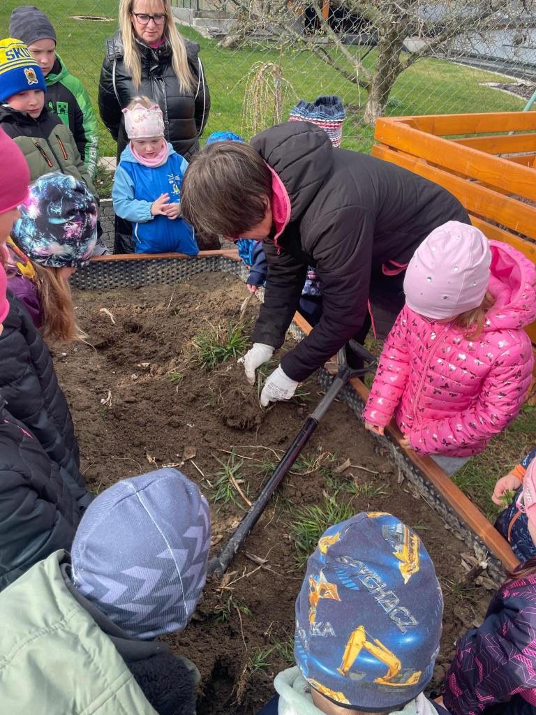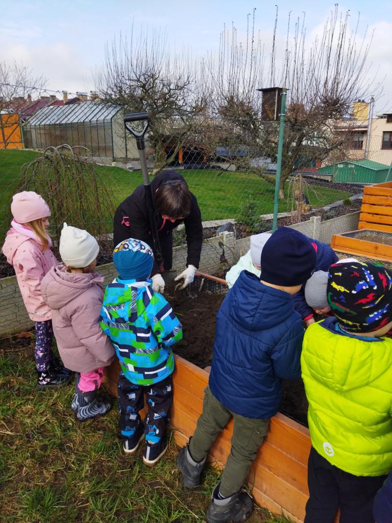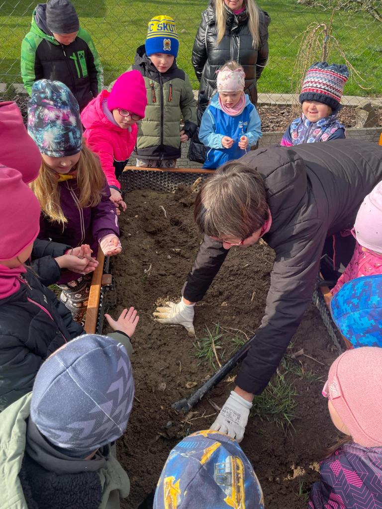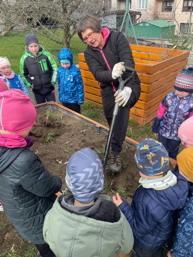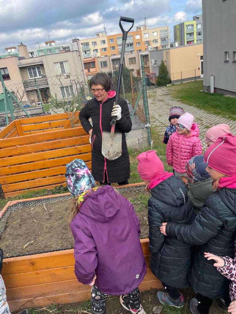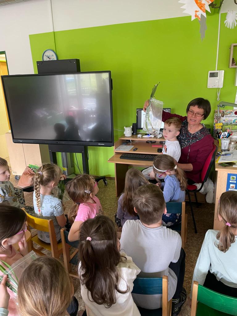 Paní zahradnice zavítala do Veselé školičky, aby dětem pověděla o sázení rostlin a životě v přírodě.