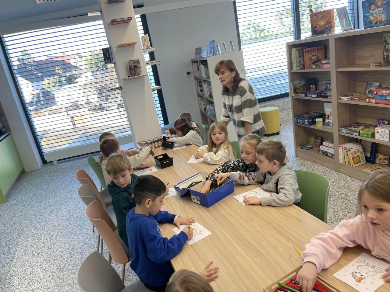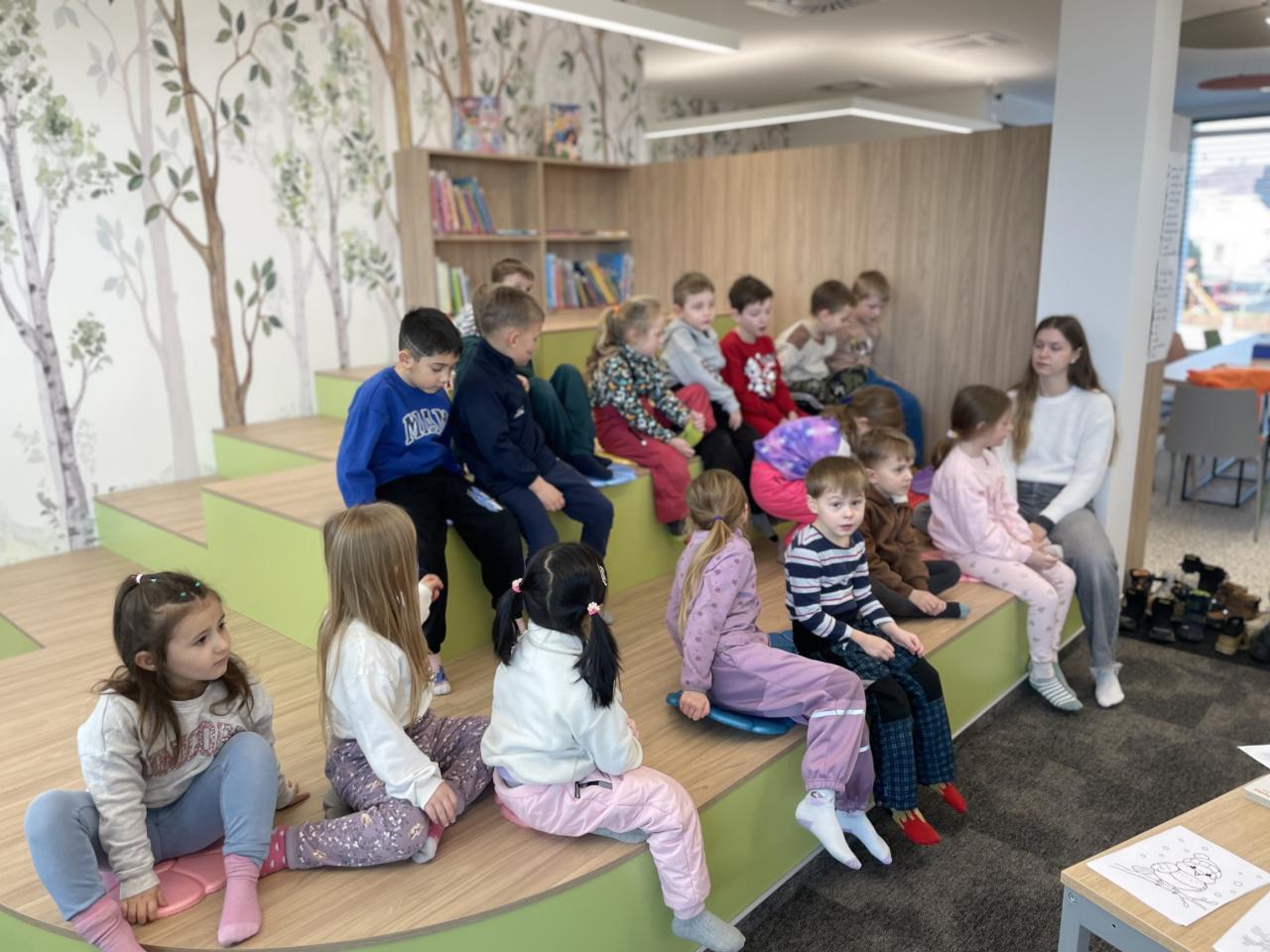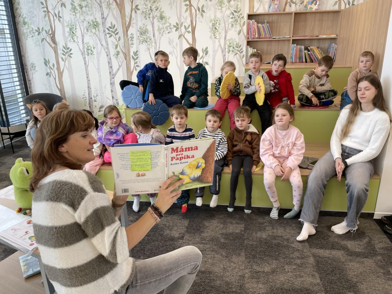 Děti navštívily a prohlédly si novou knihovnu. Poslechly si příběh. Splnily připravený úkol a poté vybarvovaly obrázky.