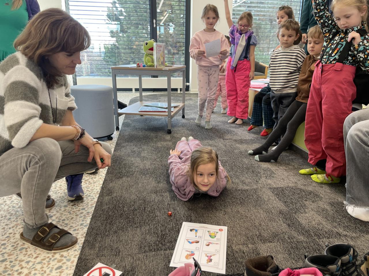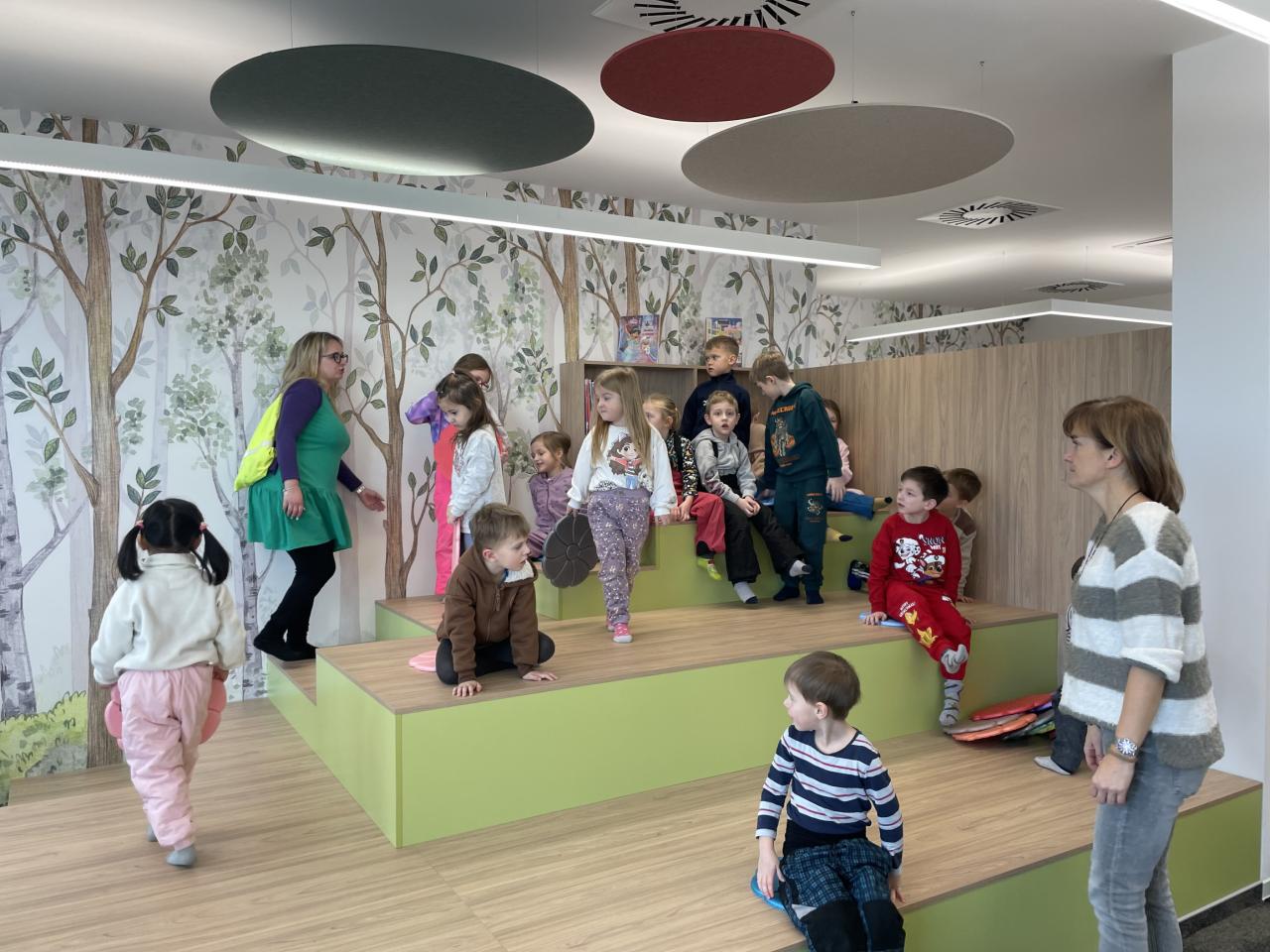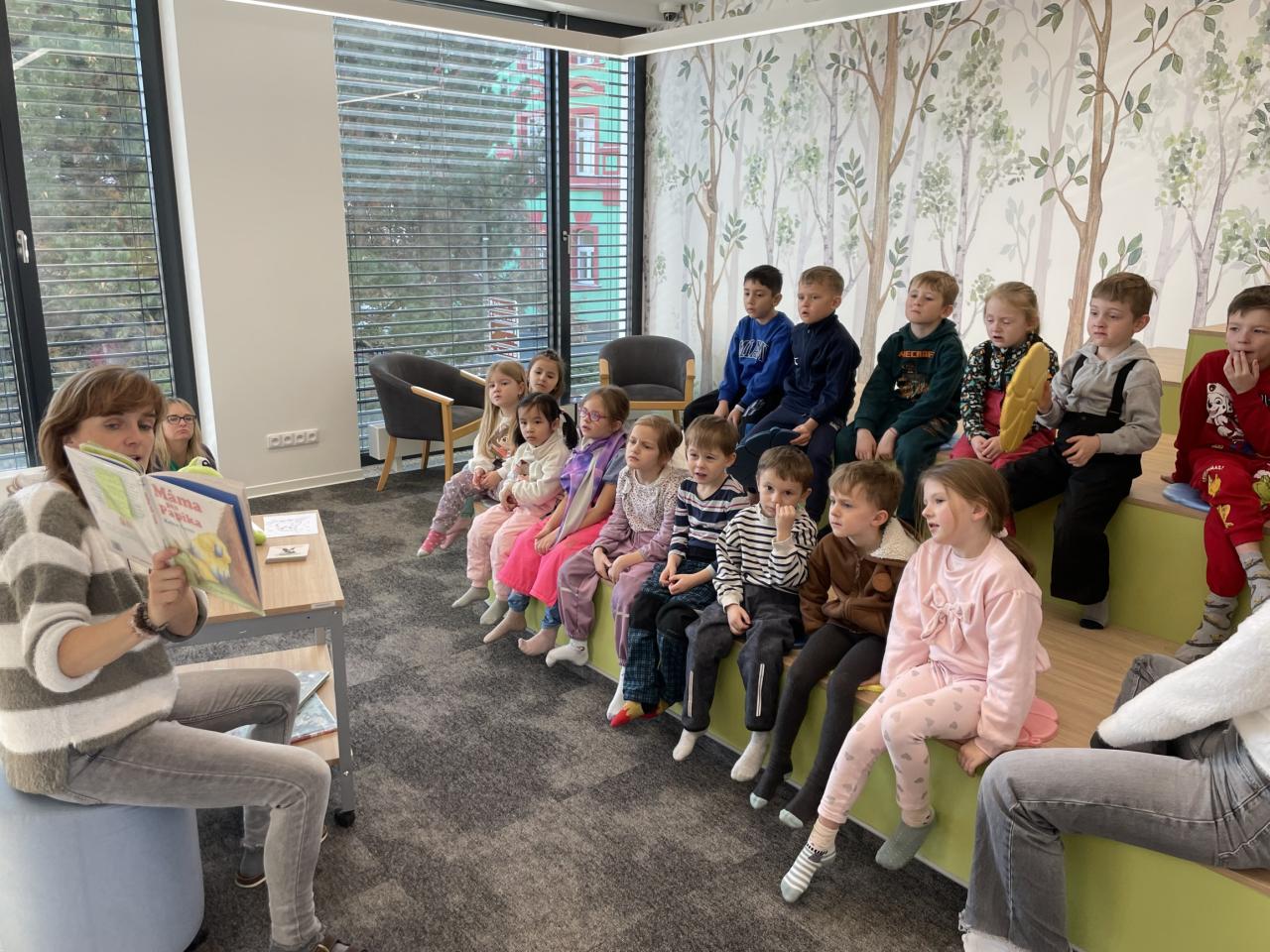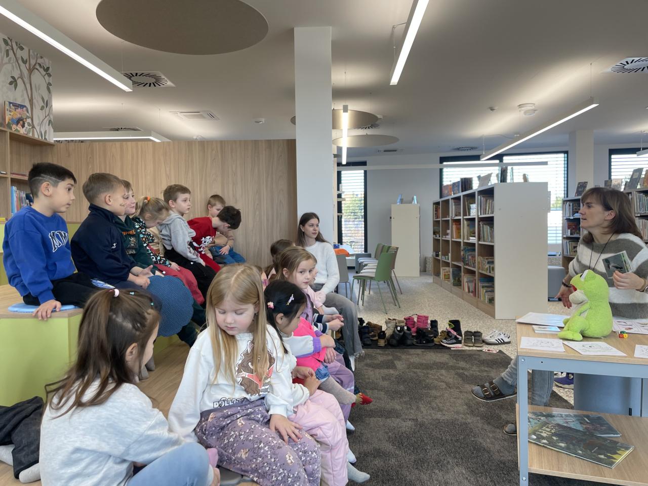 Děti navštívily a prohlédly si novou knihovnu. Poslechly si příběh. Splnily připravený úkol a poté vybarvovaly obrázky.